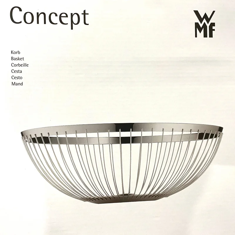 سبد های میوه دبلیو ام اف WMF ساخته شده از استیل و فولاد کرومارگان است ساختار زیبایی به خود گرفته است به دلیل ضد خش و ضد زنگ بودن آن را از دیگر مدل ها جدا می کند . این مدل سبد میوه WMF Basket LOUNGE که ابعاد 26 سانتی دارد مناسب برای هرنوع میوه و نان می باشد .