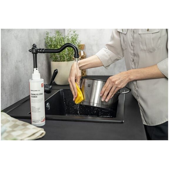 با پاک کننده استیل مخصوص زولینگ Zwilling Plus Cookware Cleanser، درخشش و زیبایی را به لوازم استیل خود بازگردانید! این فرمول خاص و قدرتمند، تمامی لکهها و اثرات سوختگی را بهسرعت از بین میبرد و ظروف شما را مانند روز اول تازه و براق میکند. بهترین راهحل برای مراقبت از استیل! خرید کنید و تفاوت را ببینید.